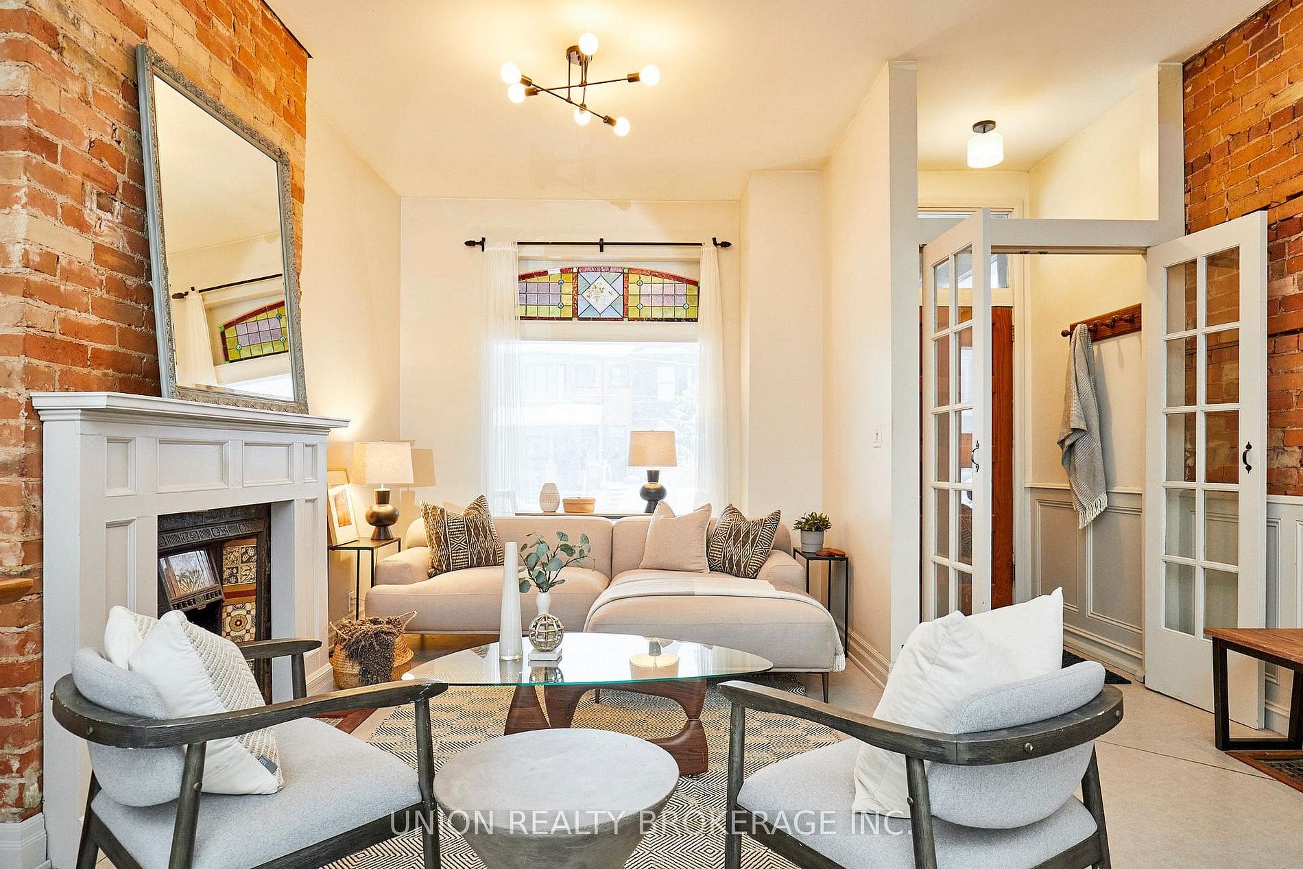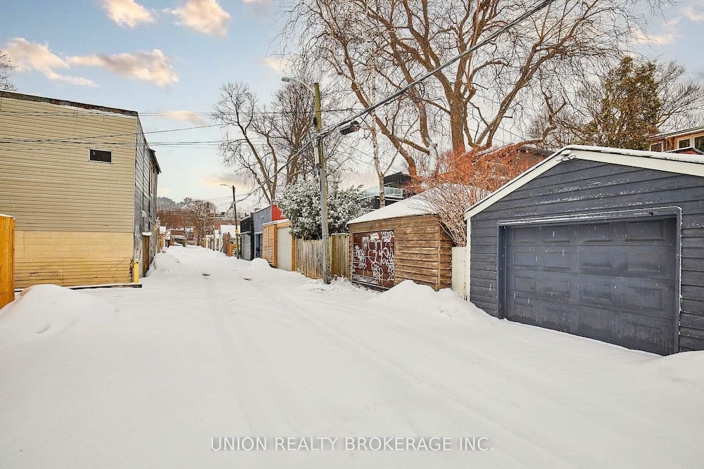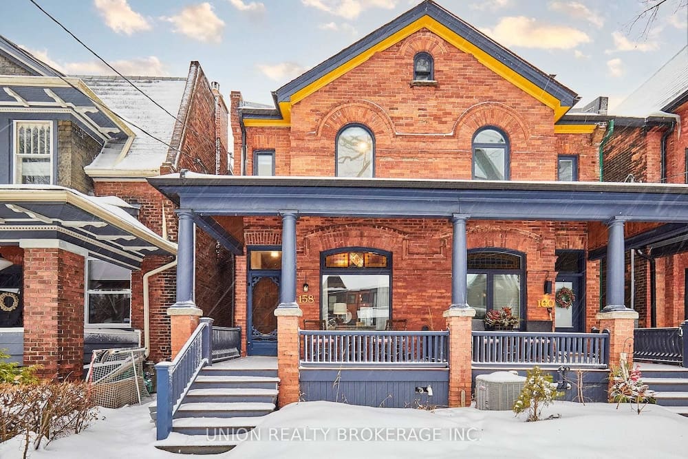 Listing Price: $1,199,900 | Virtual TourA Leslieville gem! This charming red brick 3 storey is perfect for anyone seeking a home with vintage charm and architectural character, in one of Toronto’s most vibrant neighbourhoods. Spend your summers on the front porch, overlooking the yard and quiet street. Step inside the foyer that leads into an open concept living space with an airy, triple-height dining room spanning to the top floor, creating a stunning sense of volume and light. Beautifully complimented by a living room with exposed brick, stained glass, and anchored by a vintage fireplace. At the back of the home you will find a powder room and a modern kitchen with a walkout to deck and backyard, with a path to an oversized detached garage for parking off the lane. On the second floor, two well-appointed bedrooms with hardwood flooring, and convenient second-floor laundry. The skylit third floor hosts the primary bedroom suite with a 3-piece ensuite and walk out to a private rooftop deck. Step outside, and you’re in the heart of one of Toronto’s most beloved neighbourhoods. Just down the street, Pilot Coffee Roasters and a host of trendy eateries await, along with local breweries and live entertainment at venues like the Toronto Operetta Theatre and The Opera House. Nearby parks like Jimmie Simpson and Greenwood Park offer a slice of green for outdoor activities and the annual Leslieville Farmer’s Market. With easy access to public transit, downtown and the sandy shores of Cherry Beach are only a short commute away. Morse Street Junior Public, Queen Alexandra, and Riverdale CI school district. A must see with its unforgettable blend of charm and architectural drama!