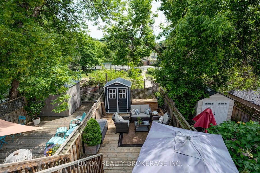 Listing Price: $1,099,900 | Virtual TourFour floors of beautiful freehold living in Leslieville! Tucked away at the top of a dead-end street, this low-traffic location is a hidden gem. With over 2000 square feet of interior living space and a deep 110 foot lot, there is more than enough room for you and your family to spread out. Enjoy a lovely updated kitchen featuring stainless steel appliances and tons of counter and cupboard space. Two large bedrooms on the second floor and a luxurious third-floor primary suite, equipped with your own four-piece bathroom, deep wall-to-wall closets and a walk-out balcony. Rare eight-foot ceilings on the lower level with a walkout! The backyard is fully decked and an entertainer’s dream, backing onto a parkette, surrounded by trees for extra privacy and a beautiful ambiance. Gorgeous, sparkling, hardwood floors and pot lights throughout, a built-in garage AND private parking! This home ticks every box – come and see for yourself! New roof (2022) and freshly painted top to bottom! Walking distance to local shopping, transit and excellent local schools. Be sure to check out the secret passage at the top of the street providing a direct pathway to Coxwell Avenue.