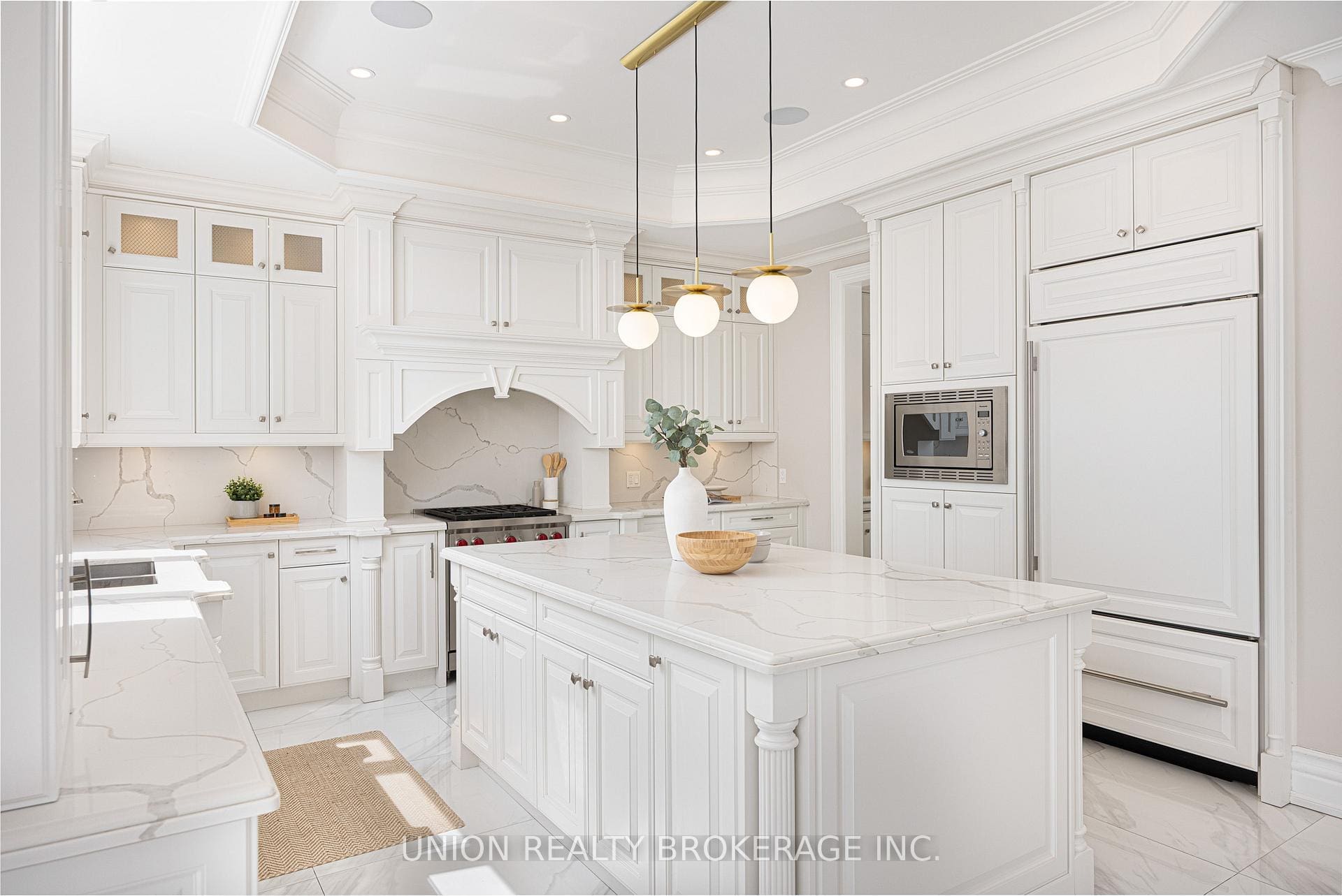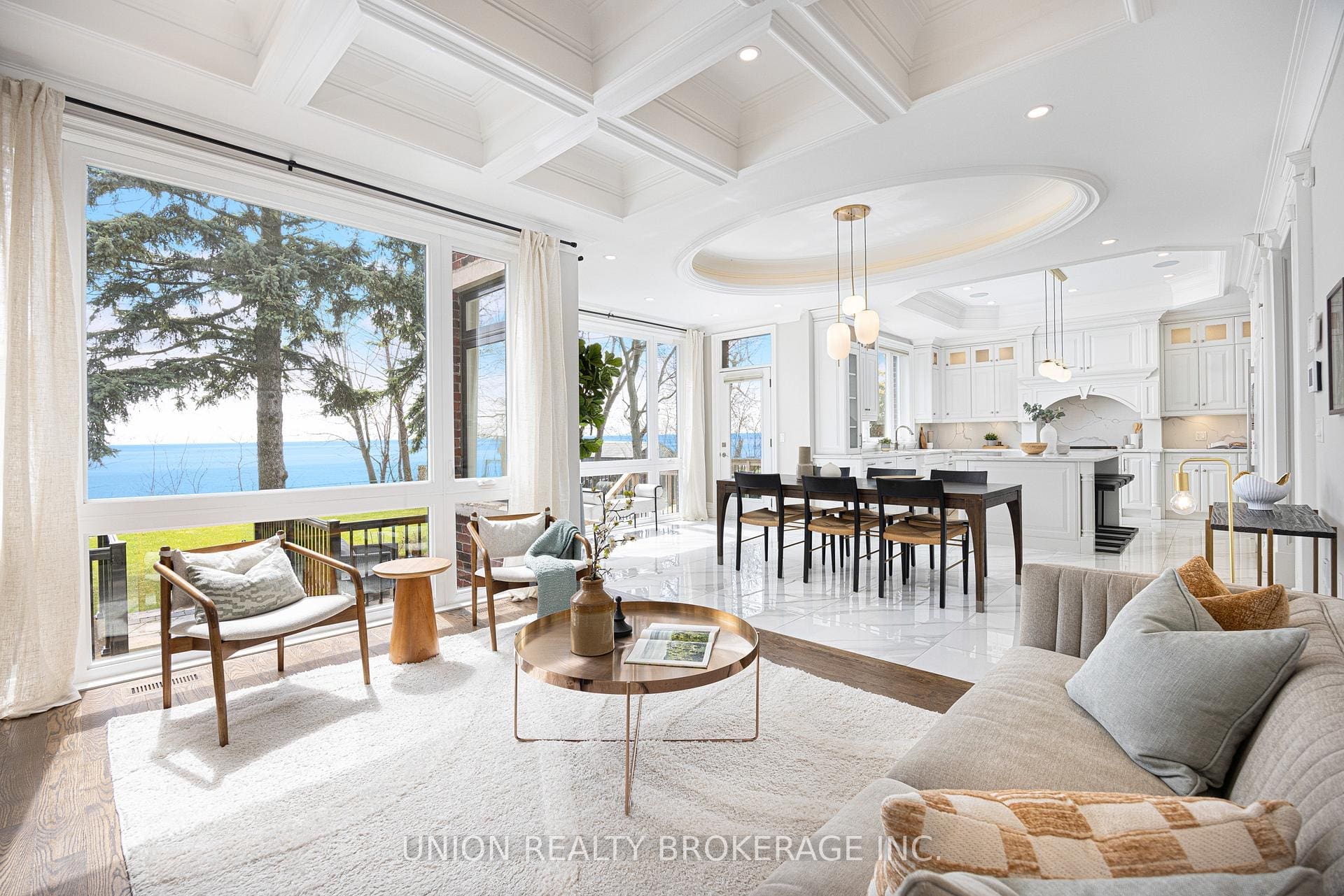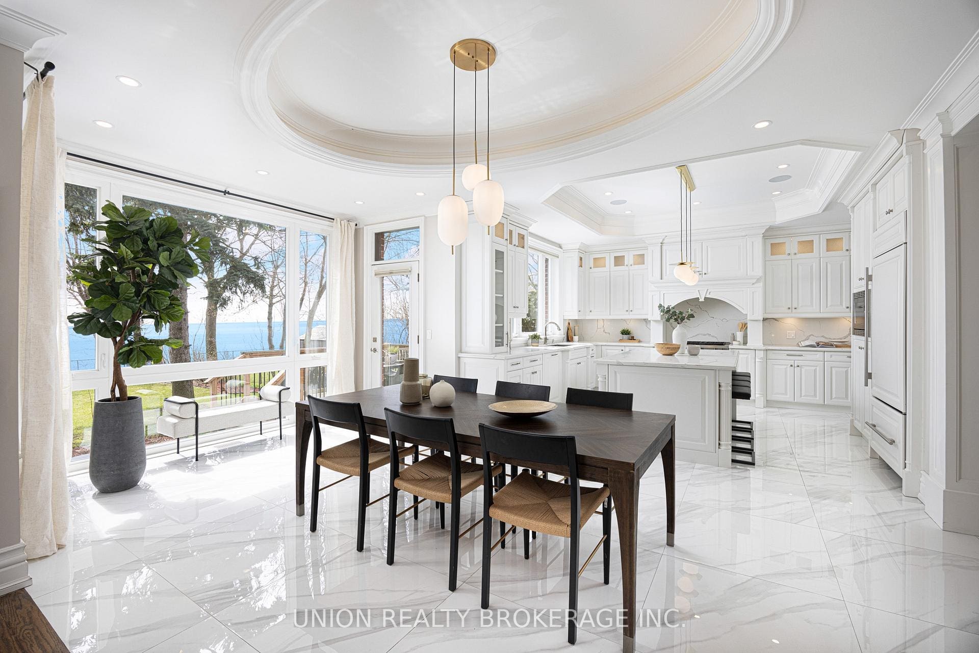 The entire back of the house is filled with floor-to-ceiling windows that flood the main floor with natural light, framing the breathtaking lake views. No detail has been overlooked. With premium finishes throughout, including marble flooring, rich panelled walls, coffered ceilings, cove lighting, and elegant oak hardwood. Additionally, a grand circular oak staircase and domed ceiling with oculus skylight create a striking architectural statement. The gourmet kitchen is a chef’s dream, complete with Sub-Zero and Wolf appliances, quartz-marble countertops, a butler’s pantry, and lastly a walkout to a deck that captures the full beauty of the setting.