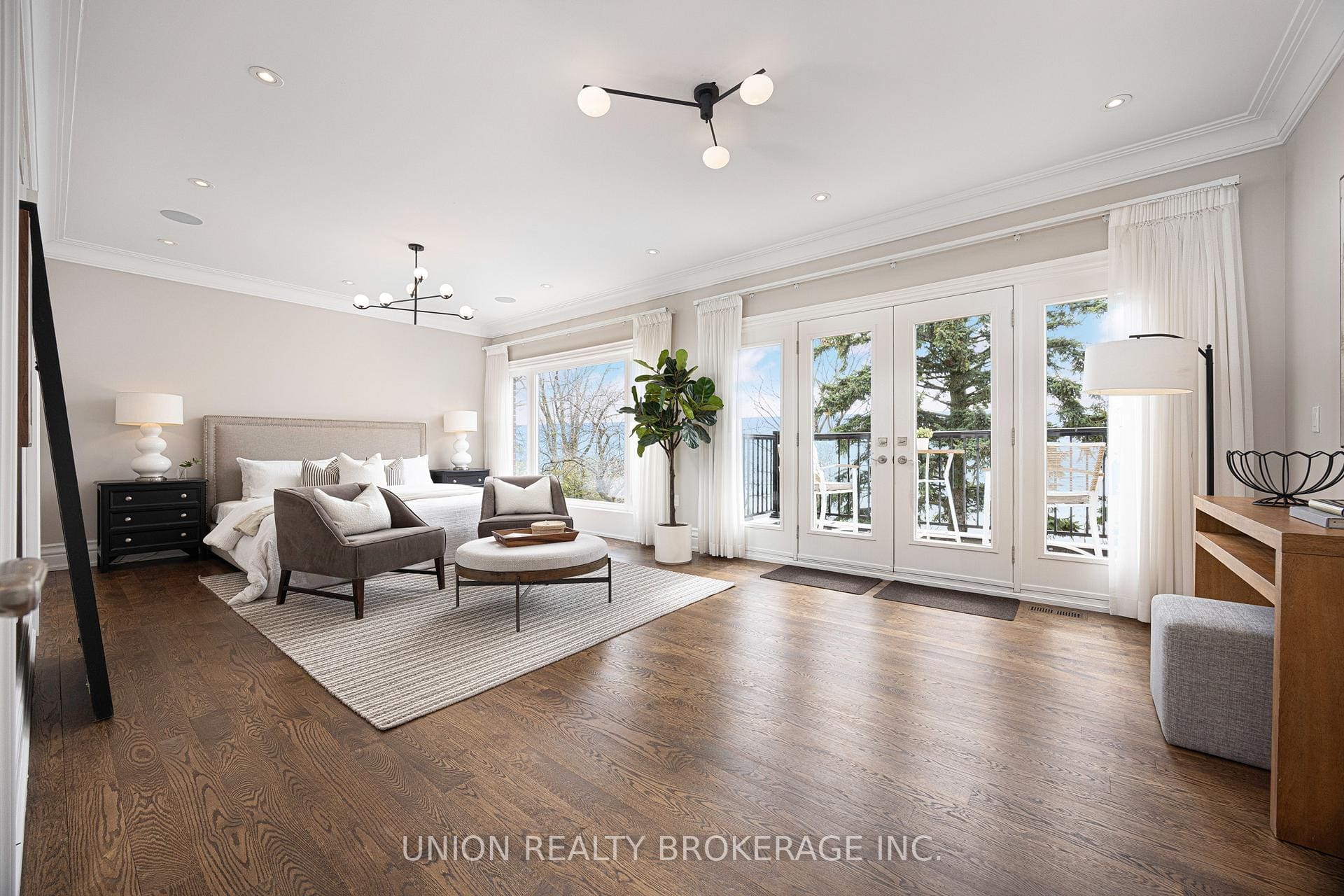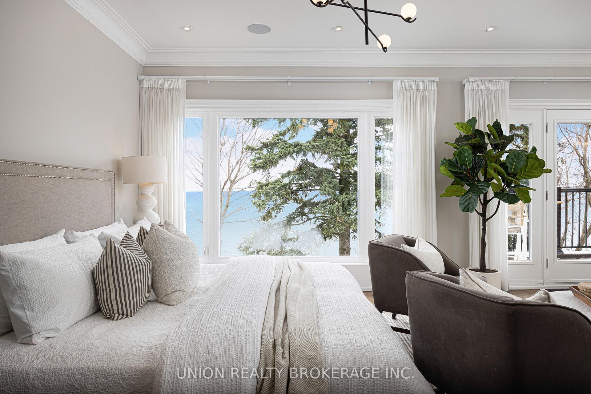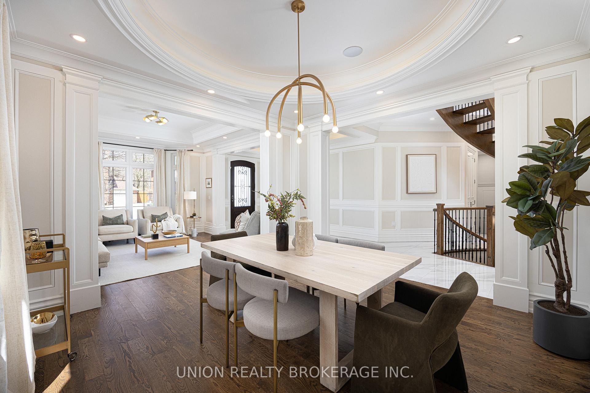 The entire back of the house is filled with floor-to-ceiling windows that flood the main floor with natural light, framing the breathtaking lake views. No detail has been overlooked. With premium finishes throughout, including marble flooring, rich panelled walls, coffered ceilings, cove lighting, and elegant oak hardwood. Additionally, a grand circular oak staircase and domed ceiling with oculus skylight create a striking architectural statement. The gourmet kitchen is a chef’s dream, complete with Sub-Zero and Wolf appliances, quartz-marble countertops, a butler’s pantry, and lastly a walkout to a deck that captures the full beauty of the setting.